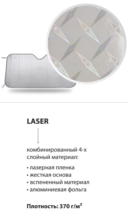 LASER – комбинированный 4-слойный материал: лазерная пленка, жесткая основа, вспененный материал, алюминиевая фольга. SUN-370 (М), SUN-370 (L), SUN-370 (XL)