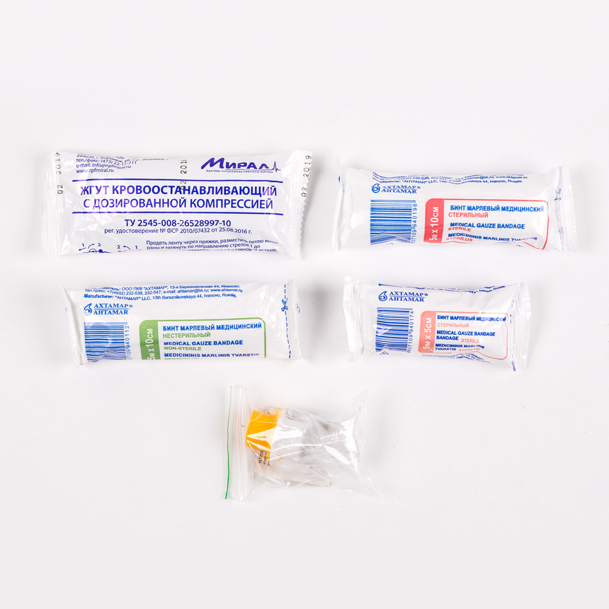 2. Бинт марлевый медицинский нестерильный 3м х 10см (или 5м х 10см) - 1шт.