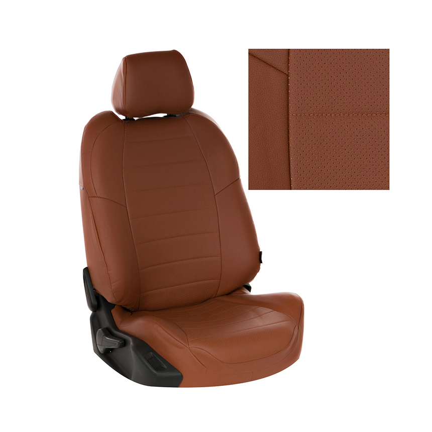 Тыльные и боковые части чехлов сделаны из гладкой экокожи, а центральная часть - из перфорированной экокожи.