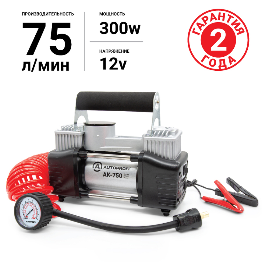 Воздушный двухпоршневой автомобильный компрессор АК-750 это новинка в линейке AUTOPROFI "SILVER".