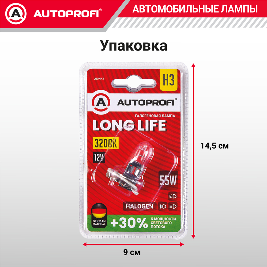 Линейка галогеновых ламп AUTOPROFI LONG LIFE - Галогеновые лампы со световым потоком на 30% мощнее чем у стандартных ламп. Имеют увеличенный более чем в 2 раза рабочий ресурс..