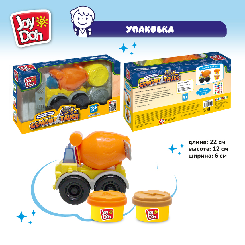 Ваш малыш любит строить? Набор для лепки «Mini Cement Truck» от Joy-Doh подойдет маленьким экспертам, разбирающимся в строительной технике. Полноценная бетономешалка с подвижными колесами и сменными насадками для выдавливания массы не оставят равнодушным вашего ребенка.