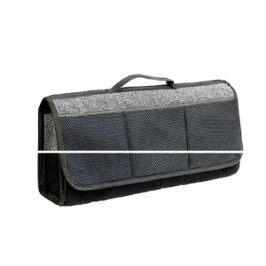 Автомобильный органайзер-сумка из ковролина. Цвет серый с характерной фактурой. Материал износостойкий и рассчитан на хранение в багажнике. В таком органайзере можно разместить автохимию, инструменты, автоаксессуары. Размер 50х13х20 см.