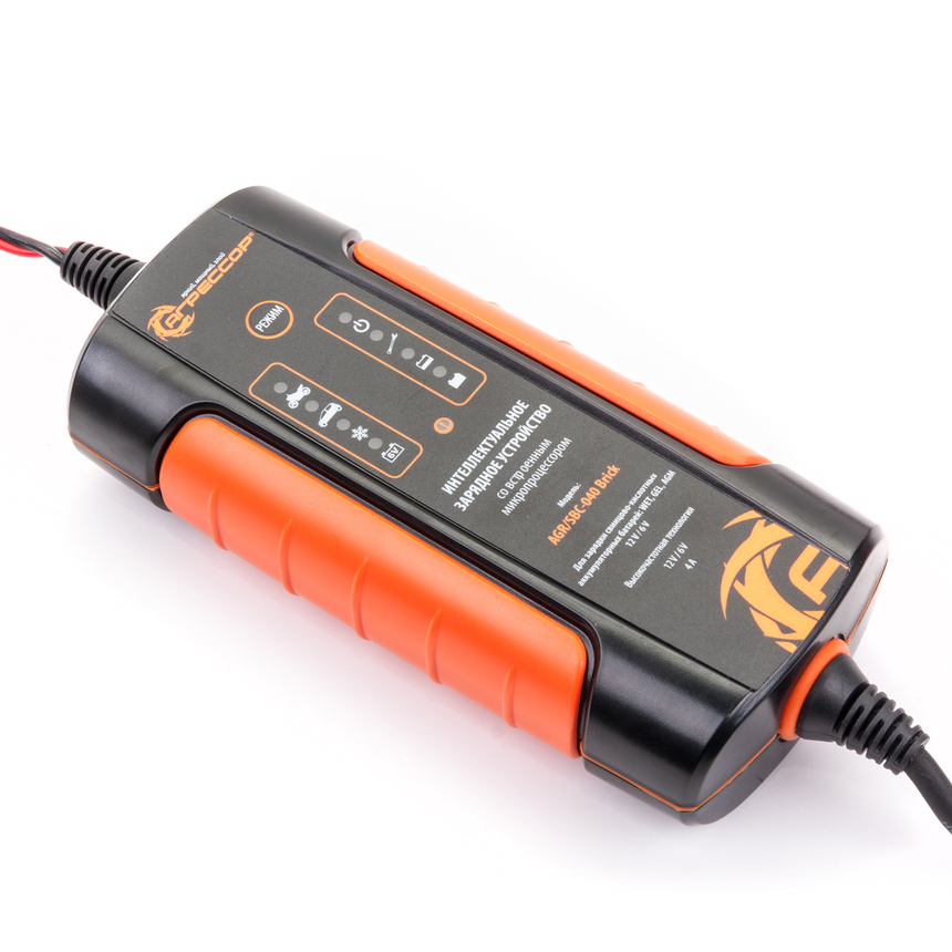 Компактное зарядное устройство для свинцово-кислотных АКБ 12В / 6В. Особенности устройства — 9-ступенчатая зарядка, режим восстановления батареи, подзарядка аккумулятора при температуре ниже +5 градусов. Зажимы универсальные на любые клеммы автомобильных аккумуляторов. Встроенный микропроцессор для контроля параметров заряжания и диагностики неисправностей. Подходит только для свинцово-кислотных АКБ!