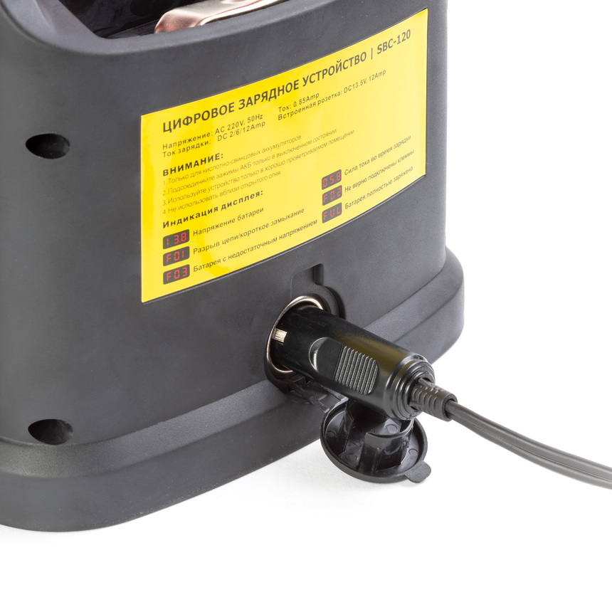 Трехфазная процедура зарядки дополнена защитой от перезарядки АКБ или неправильного подключения клемм к полюсам АКБ. Встроенная розетка 12В обеспечивает оптимальную силу тока для заряжания — 14А. Выбор силы тока можно выставить самостоятельно на 2, 6 или 12 ампер. Режим «Быстрая подзарядка» позволяет за 5 минут дать батарее заряд для пуска двигателя. Только для свинцово-кислотных аккумуляторов!