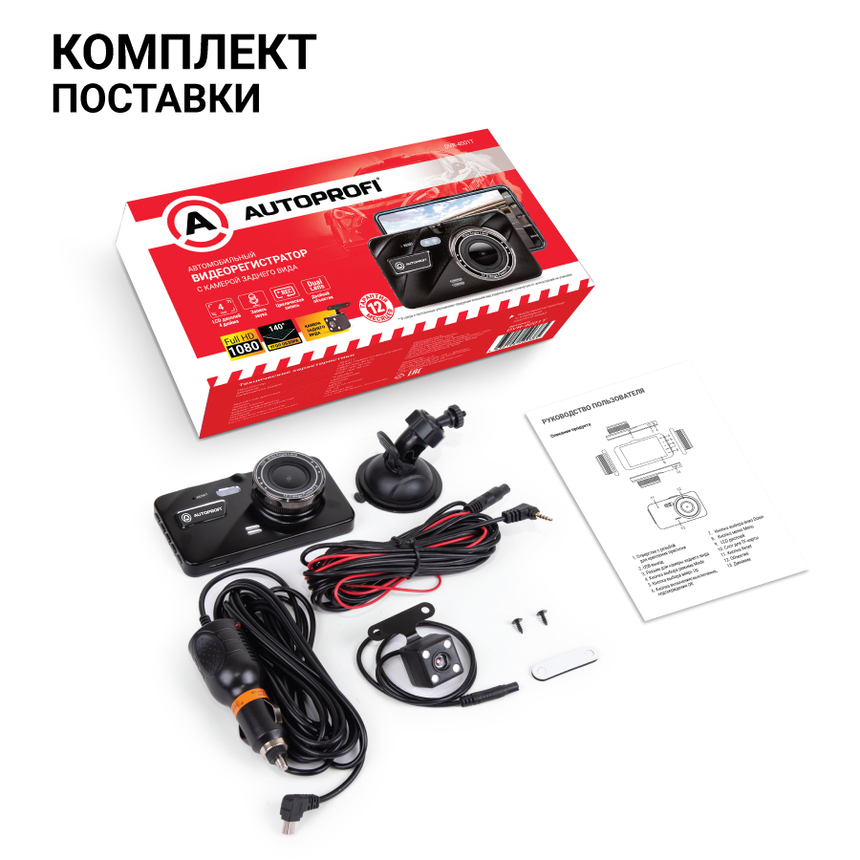 Видеорегистратор Autoprofi, 1080Р, угол обзора 140°, дисплей 4", камера заднего вида, память до 128Gb
